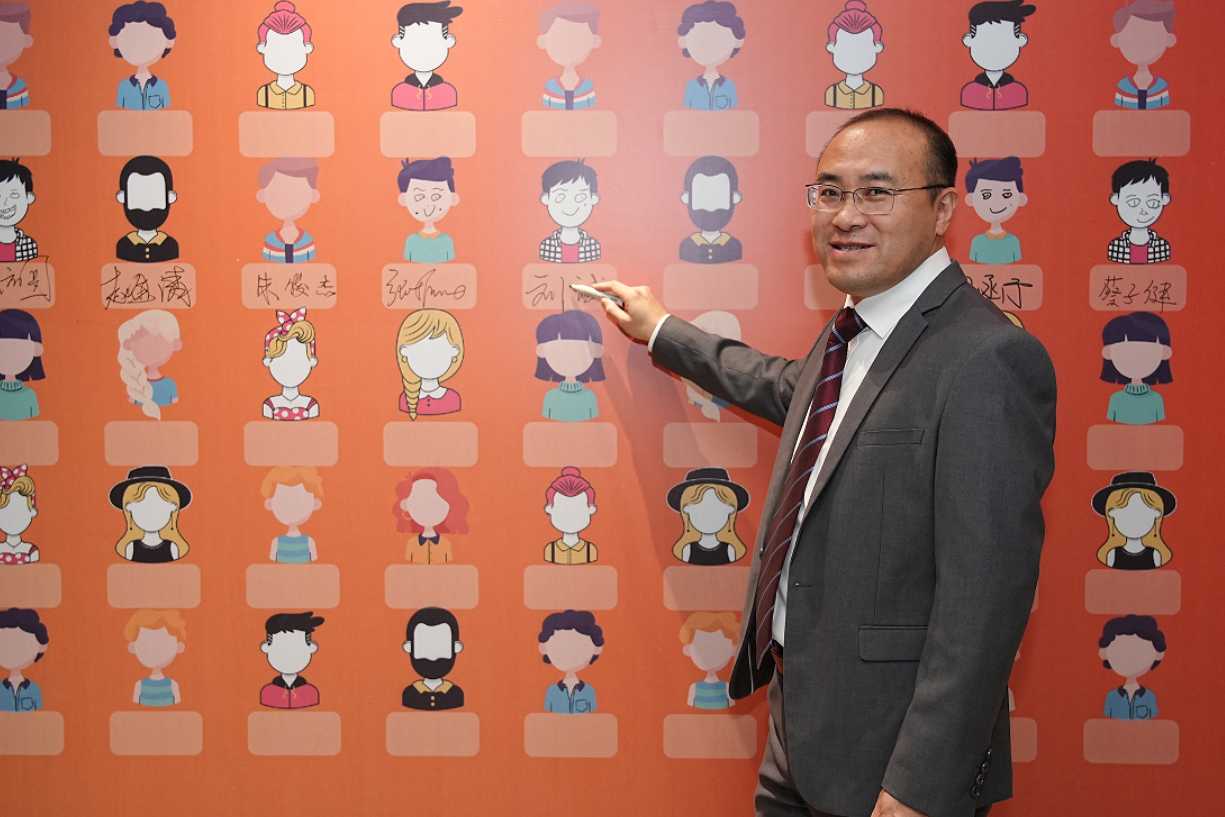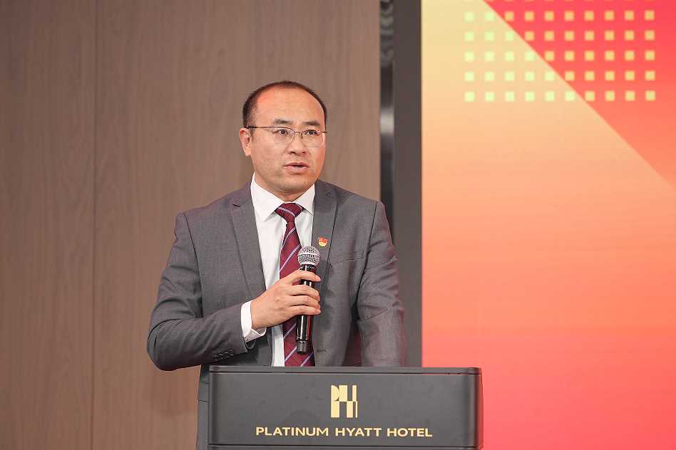 尊龙凯时科技总裁王功学揭幕2024十九周年视觉宣传标识。